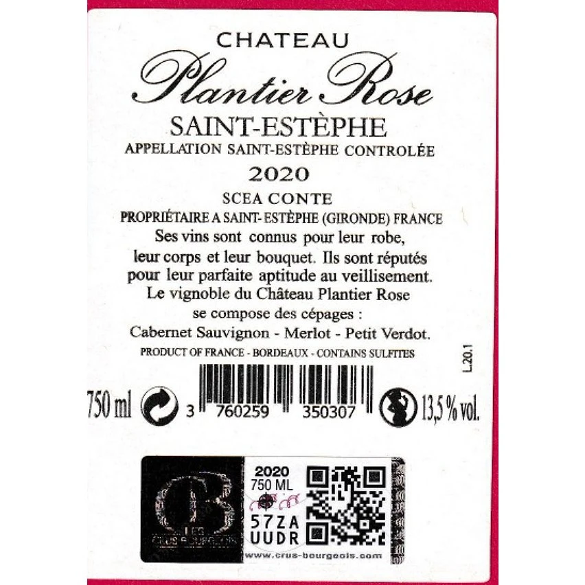 Meilleure vente 🌟 Château Plantier Rose, 2020 – Saint-Estèphe AOP – Rouge – 75 cl ❤️
