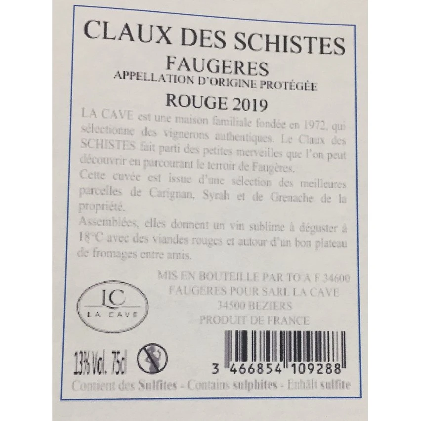 Acheter ❤️ Claux des Schistes, 2019 – Faugères AOP – Rouge – 75 cl ✨
