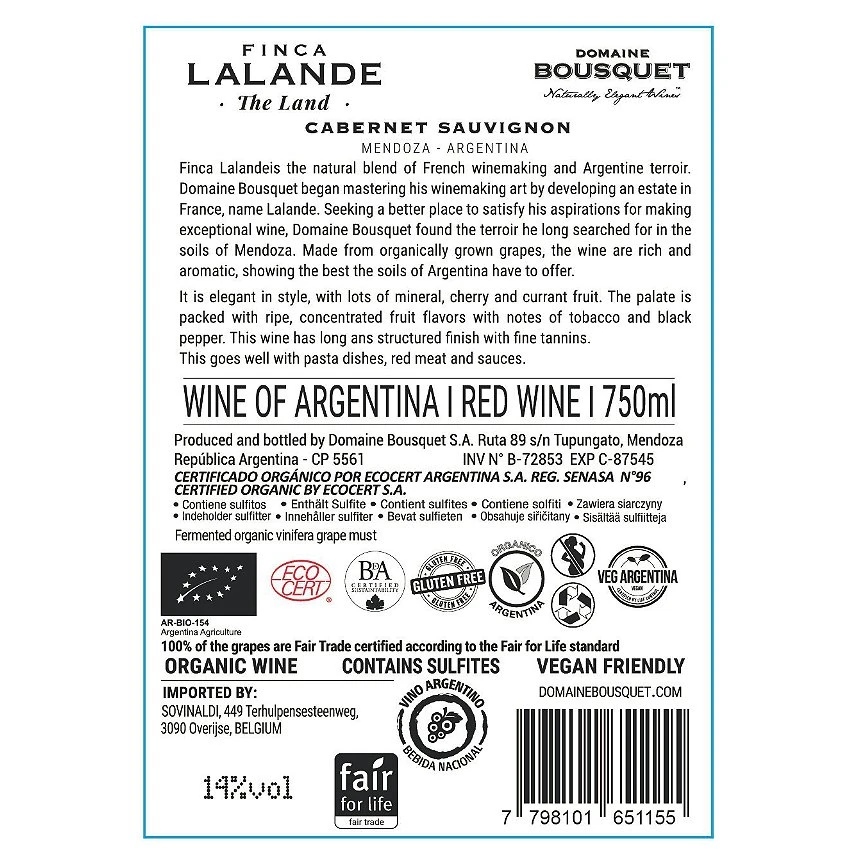 Le moins cher 🥰 Finca Lalande BIO, 2021, Argentine – Rouge – 75 cl 👏