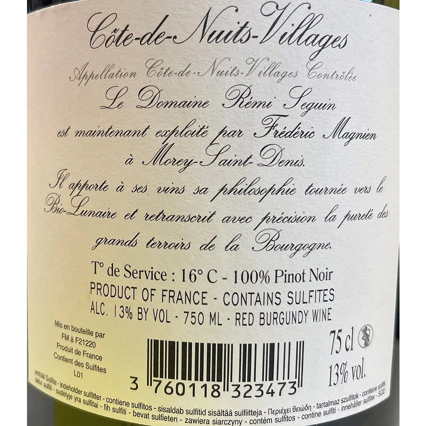 Vente flash 🥰 Rémi Seguin, 2020 – Côte de Nuits Villages AOP – Rouge – 75 cl 🥰