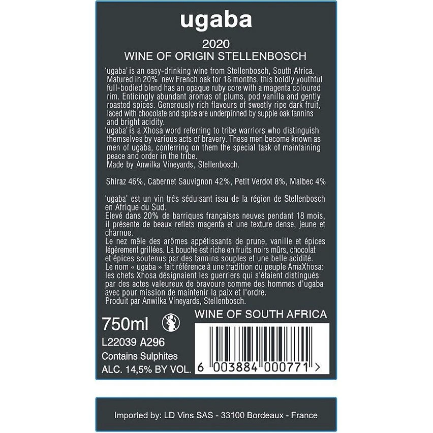 Promo 🔥 Ugaba, 2020 – Stellenbosch, Afrique du Sud – Rouge – 75 cl ✨